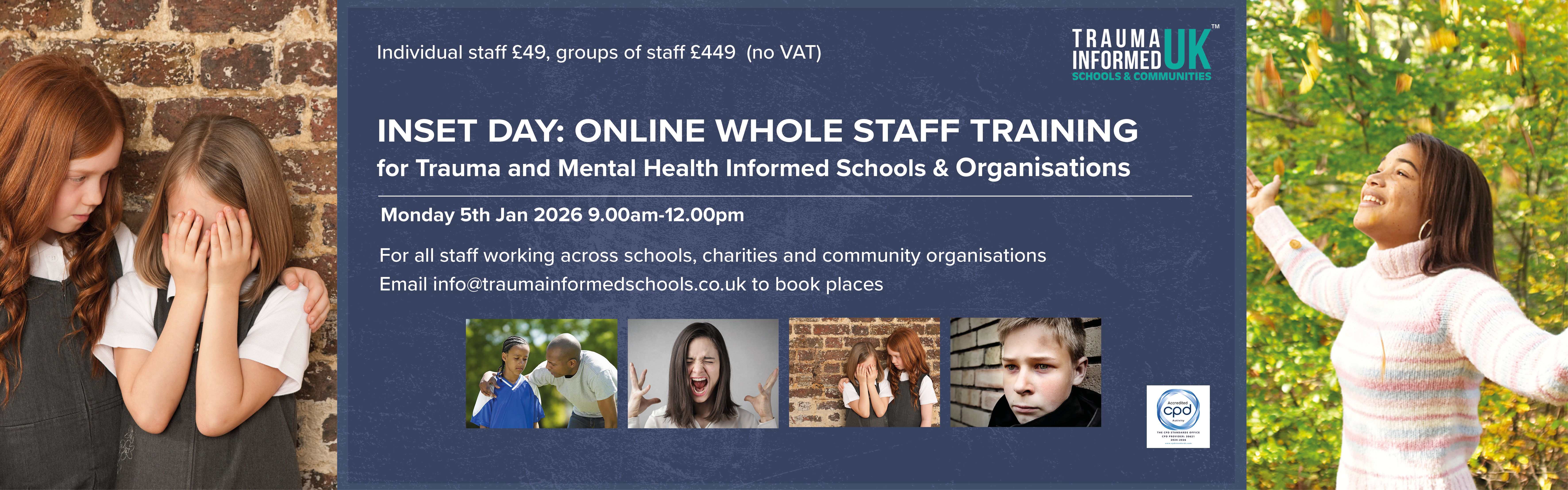 If you would like to make a booking, please get in touch with us at info@traumainformedschools.co.uk with your preferred dates and we can confirm trainer availability.